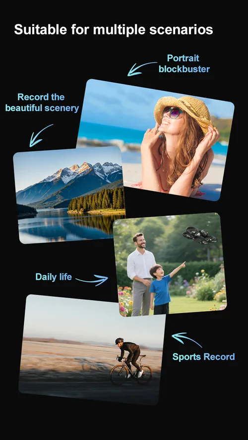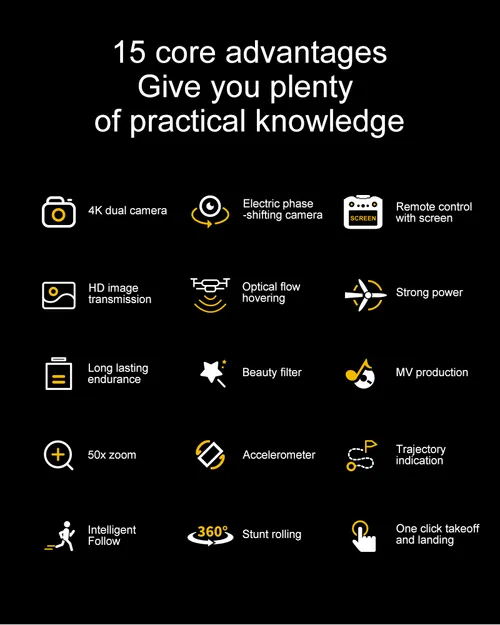 Headless mode, Altitude Hold Mode, 3D View Mode, with camera, With LED lights, with G-sensor, One Key Takeoff / Landing, APP Control, Foldable, Dual Camera