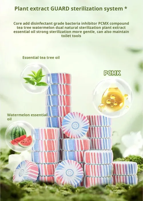 Keep your toilet fresh, clean, and germ-free with these watermelon-scented toilet cleaning tablets. Designed for automatic cleaning and deodorizing, each tablet effectively removes stains, prevents odors, and provides long-lasting freshness.