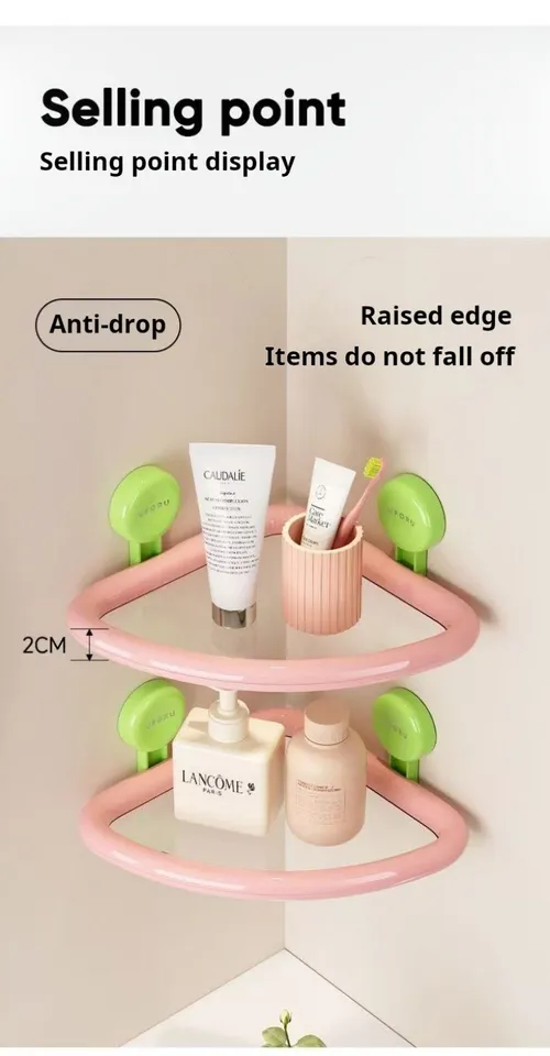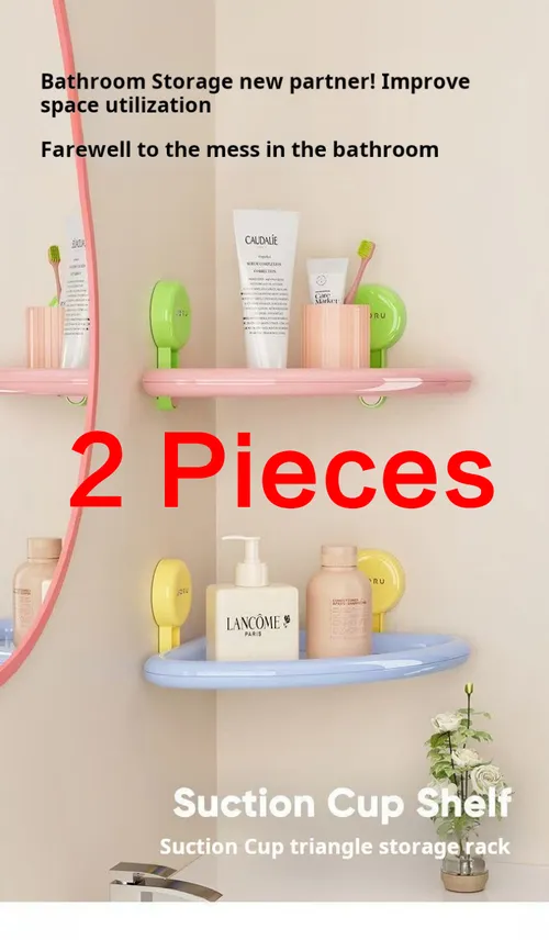 Bathroom Wall-Mount Storage Rack – 2-Pack Suction Dopamine Triangle Shelf
