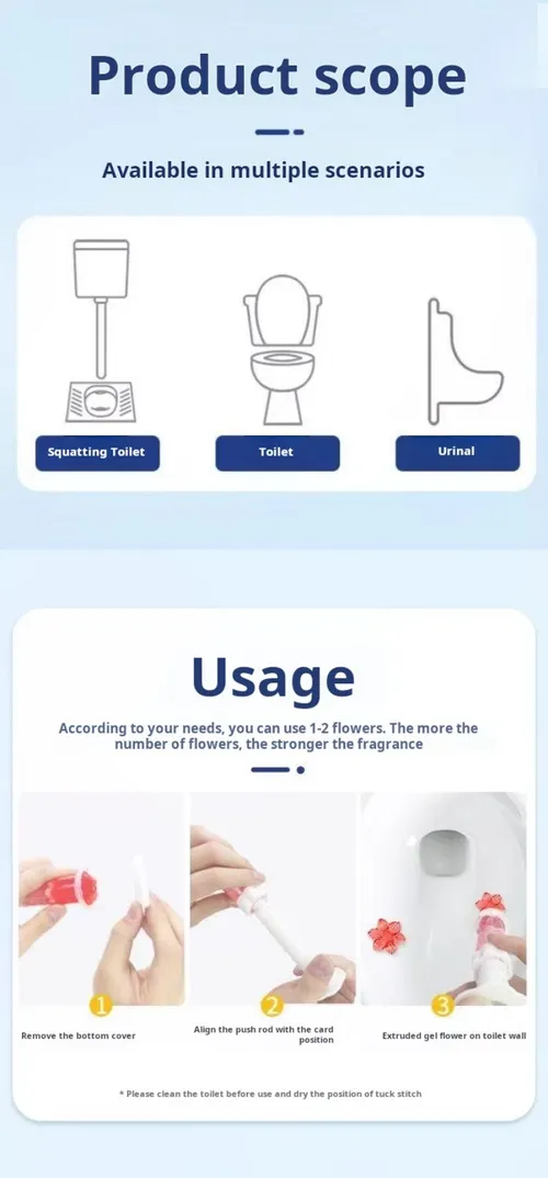 🌸 Fresh & Long-Lasting Fragrance: Infused with gardenia and rose extracts to keep your toilet smelling fresh and pleasant.