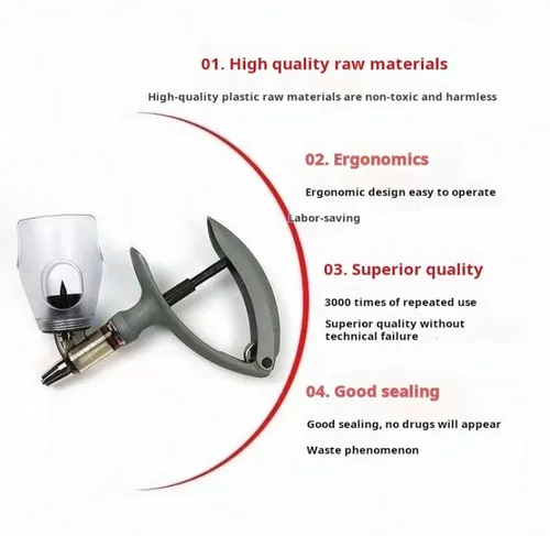 ✨ Efficient Livestock Vaccination: Designed for continuous injection, allowing multiple doses from a single vial without frequent refills, saving time and effort for large-scale farming.