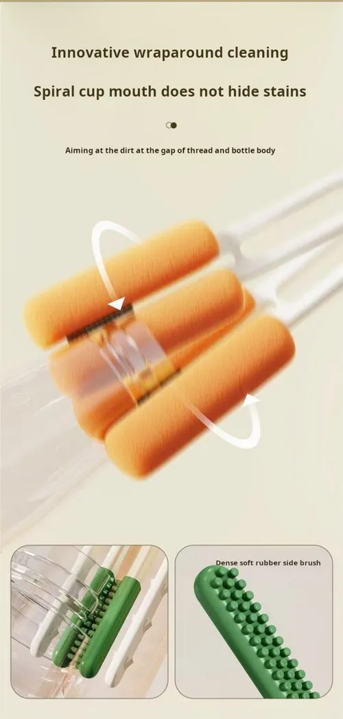 ✨ Comprehensive Cleaning Solution: Specially designed for cleaning all types of drinkware—water bottles, thermos cups, coffee mugs, travel tumblers, milk bottles, baby bottles, sports bottles, and even narrow-necked containers. Lids, straws, and grooves are easily reached and cleaned, leaving no residue or odors.
