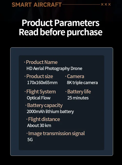 | Package Contents | 1 Drone, 1 Remote Controller, 1 USB Cable, 4 Propellers, 1 Manual, 1 Battery |