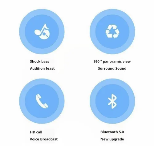 EZCast, AirPlay, Wireless Charger for Mobile Phone, DLNA, Video Call, Dolby Digita, DTS, Miracast, Phone Function, Play Video, Display Visual Information, LED Flashing light, colorful LED light, Alarm, Clock