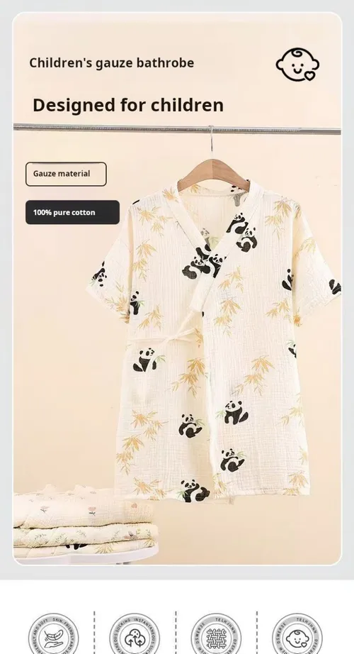 – Summer Cotton Kids & Baby Cartoon Bathrobe – Lightweight, Air-Conditioner Friendly, Spring & Autumn Loungewear, Loose Sleep Robe