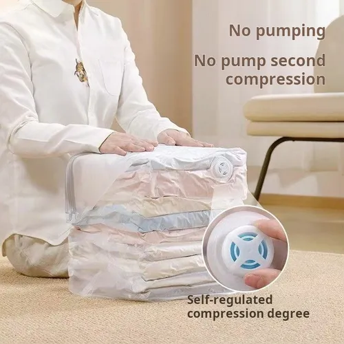 Simply place clothes or quilts inside, seal the zipper, and press to expel air. No vacuum pump required, saving time and effort for quick storage.