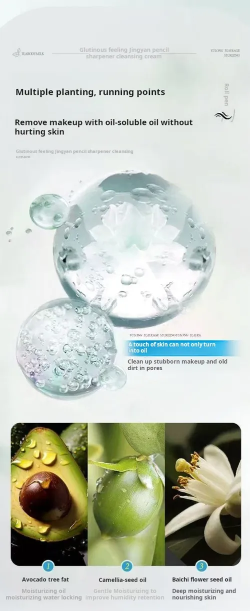 ✨ Quick-Dissolving & Emulsifying Formula: Effortlessly melts and removes makeup, including foundation, lipstick, and eye makeup, without leaving residue or clogging pores.